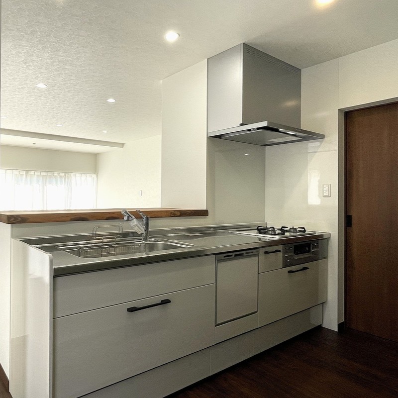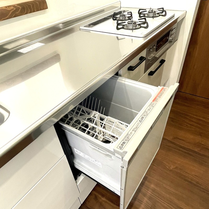 - 対面カウンターキッチン、食器洗浄乾燥機、グリル付き3口ガスコンロ